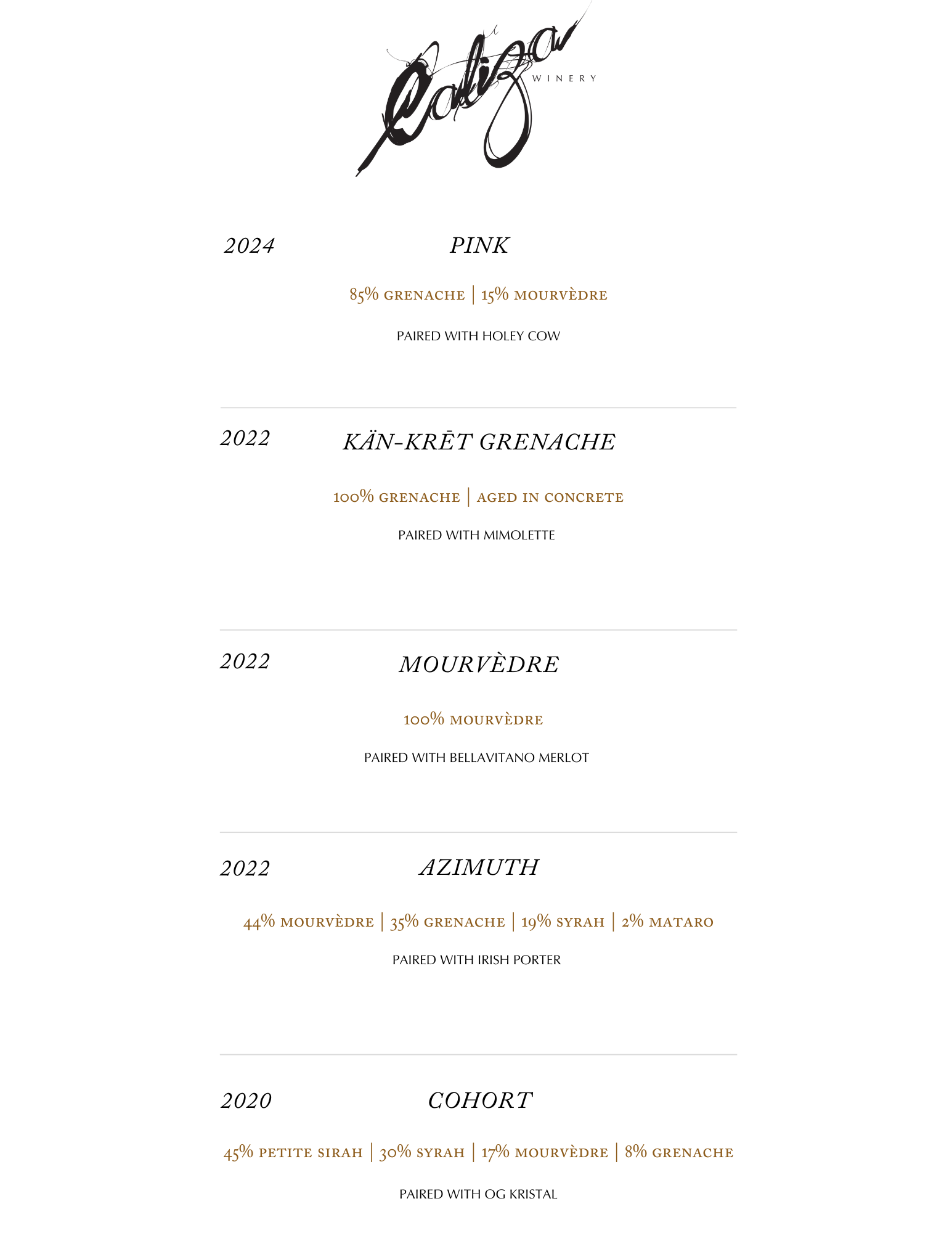 *Please contact us at 805-237-1480 or tastingroom@calizawinery.com if you have questions about a reservation or club shipment pick-up.